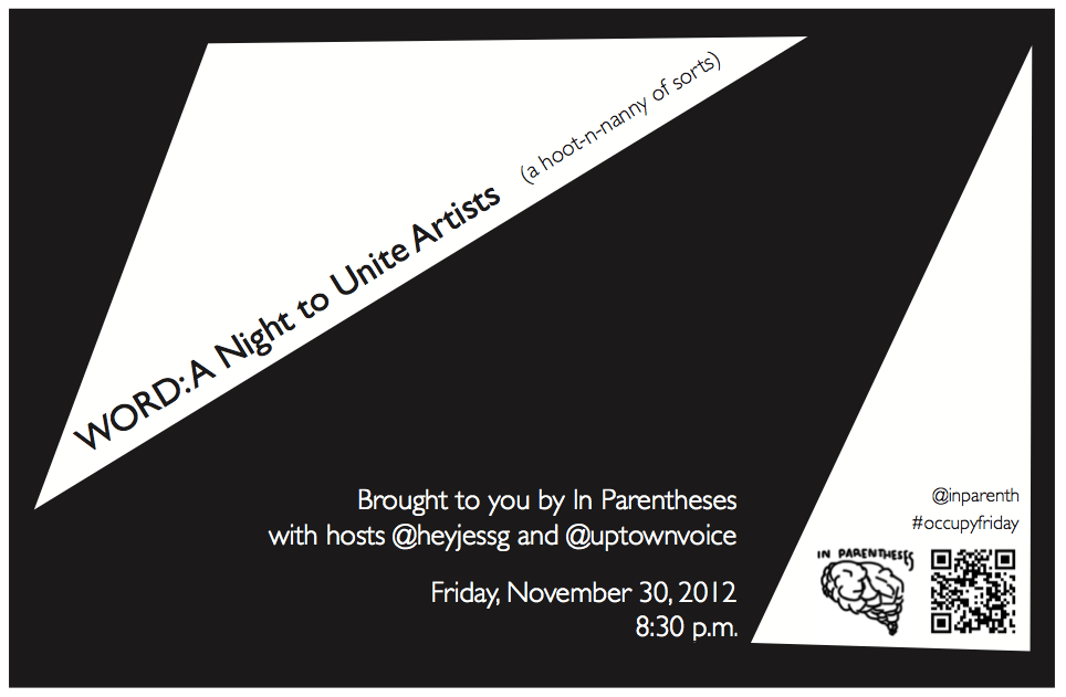 In Parentheses will be hosting a poetry reading in Allston, MA this weekend. Tweet us for any and all information.