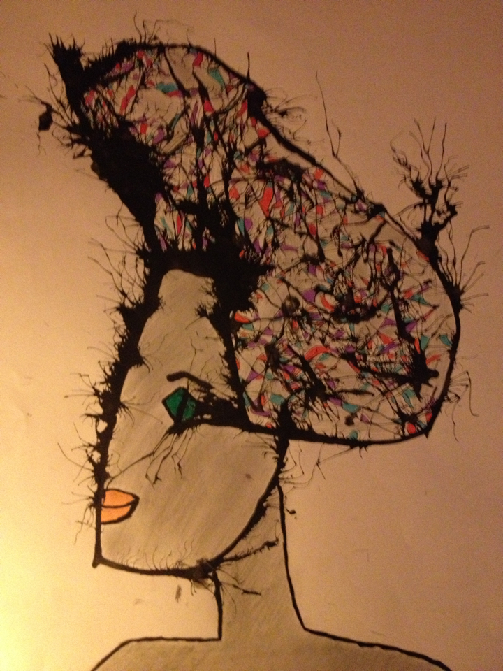 Lola Ledermann is 22 years old and she lives in Paris. In her free time, she loves listening to jazz music and going to the cinema. But, what she loves most is to draw. She draws faces. She looks for expressions of enjoyment, sadness, surprise….anything human beings can express. In her ink drawings, often accompanied by vivid colors, she uses no pen or brushes but a unique technique that she has developed.