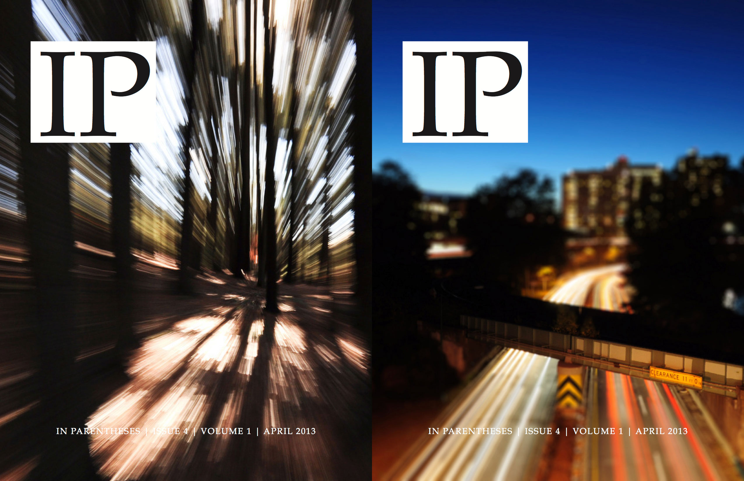 The day has come, everybody! Our final issue of the first volume of In Parentheses Literary Magazine is now available for purchase at MagCloud. To celebrate OUR FIRST ANNIVERSARY of creating the IP Blog, we have come out with two covers (by Peter Mannka). Collect both!